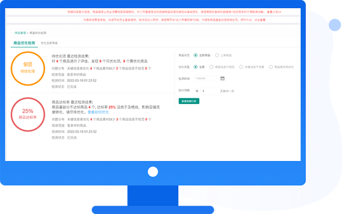 支持一键检测违规商品,自动检测商品基础分,科学诊断商品,避免违规并给