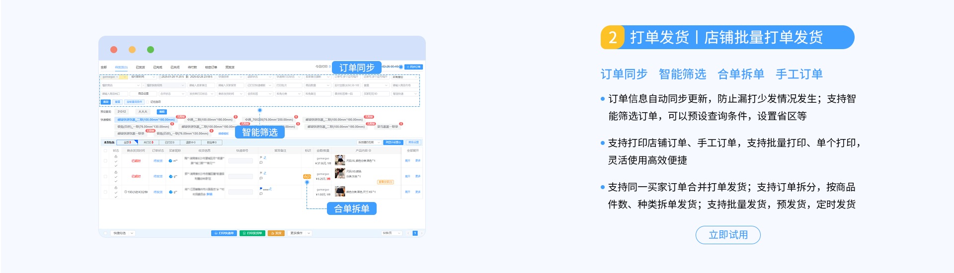 订单同步 智能筛选 合单拆单 手工订单